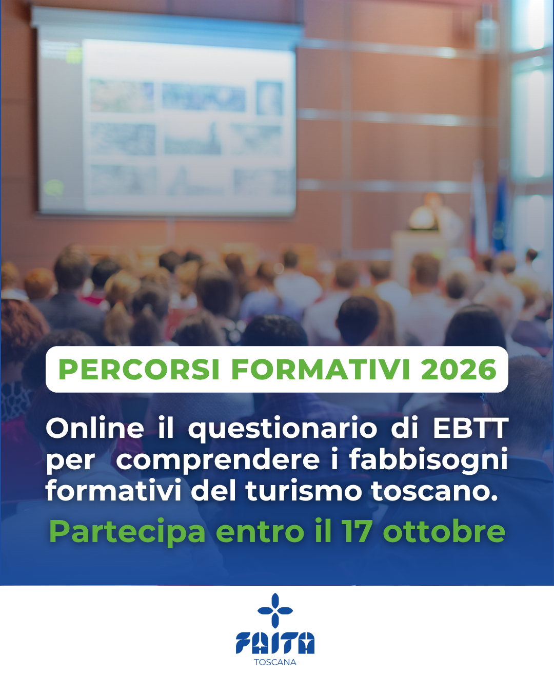 L’Ente Bilaterale del Turismo Toscano (EBTT) ha avviato la nuova indagine annuale sui fabbisogni formativi delle imprese del turismo, un appuntamento importante per fotografare le esigenze reali di aziende e operatori del comparto in vista della programmazione del piano formativo annuale 2026.